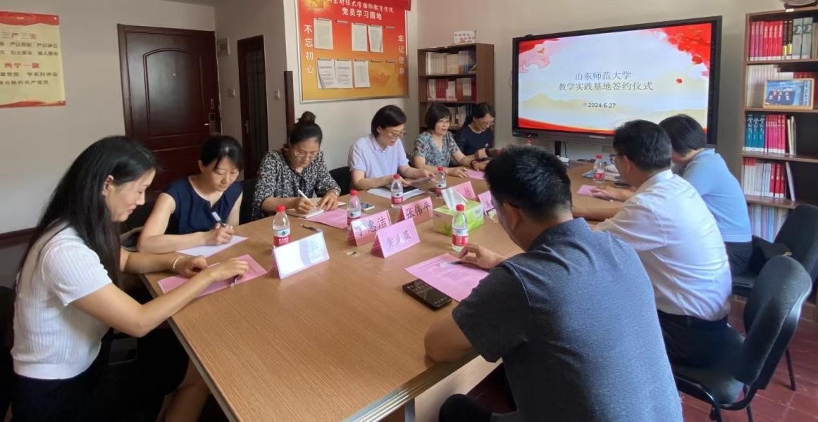 6月27日上午10点,山东师范大学ok138cn太阳集团与我院在舜耕校区干训楼会议室举行共建教学实践基地签约仪式。我院院长齐杨、山东师范大学ok138cn太阳集团院长、留学生工作办公室主任马茂祥、副院长郑翠、党政办公室主任黄克显及我院教师代表参加了本次教学实践基地签约仪式。