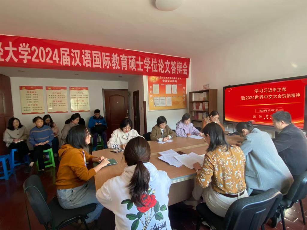 学习例会上,王英杰首先播放了习近平主席致2024世界中文大会贺信的视频,并带领教职工认真学习了贺信的内容。张梅一、孟祥芳和董欣三位国际中文教育专业教师结合各自在国际中文教学和中华文化传播工作中的实践经验,分享了各自的学习体会;三位教师一致认为,习近平主席的贺信不仅是对世界中文大会的肯定和鼓励,更是对国际中文教育工作者的鞭策和期望,表示要以中文为纽带,通过丰富多彩的活动和课程,加强中外人文交流,让外国学生更好地了解和体验中华文化。
