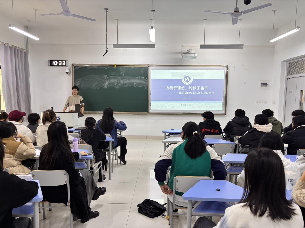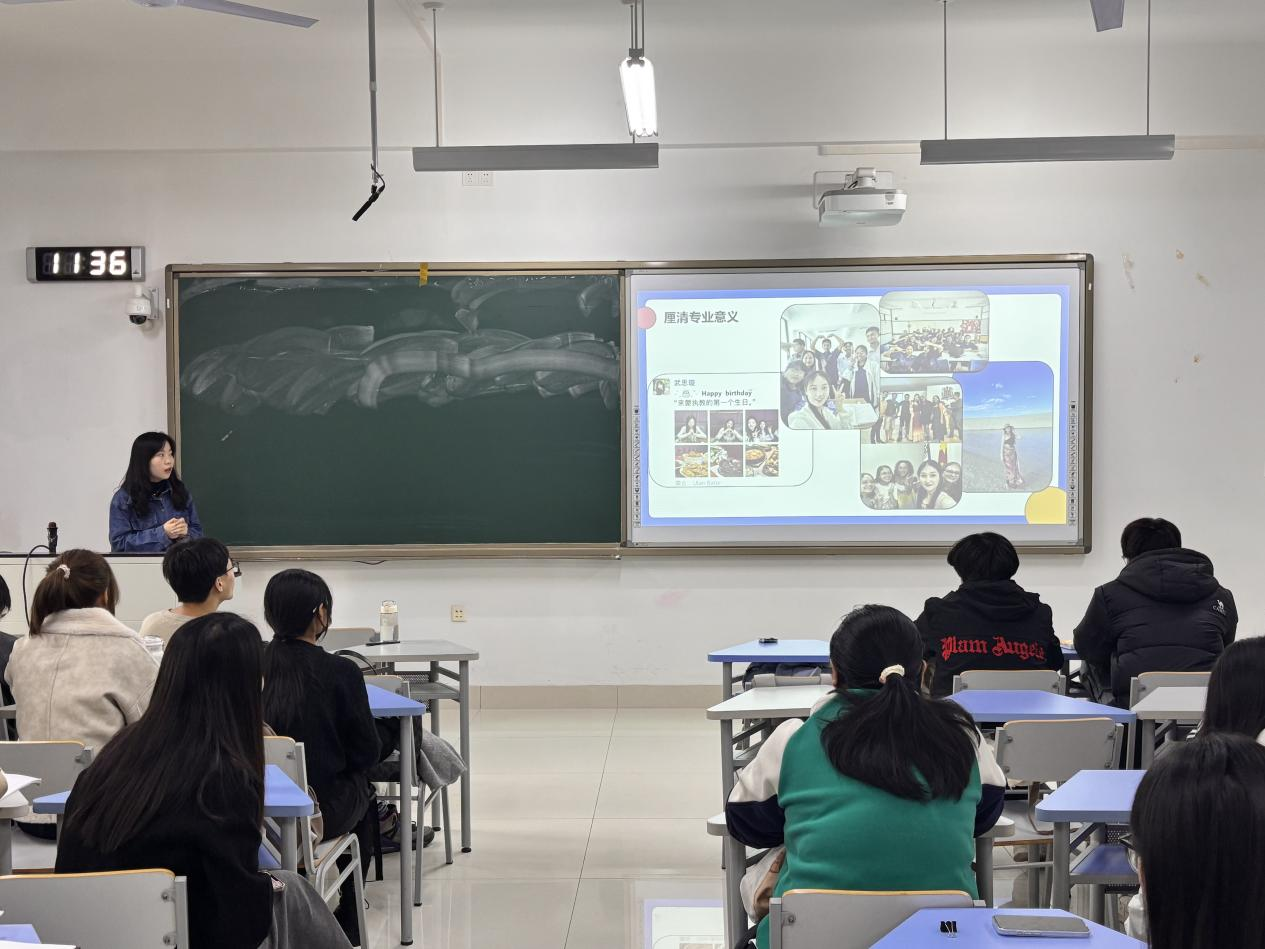专业技能方面,毕慧颖向大家介绍了硕士生阶段的主要学习内容和学习形式。她强调,硕士阶段的学习不再仅局限于教材内容,而是以研讨和研究的形式将所学内容横向拓展和纵向深化。大学四年是将自己的专业基础知识扎实牢固的黄金时期,她鼓励同学们要珍惜时光,提升自己的专业能力。