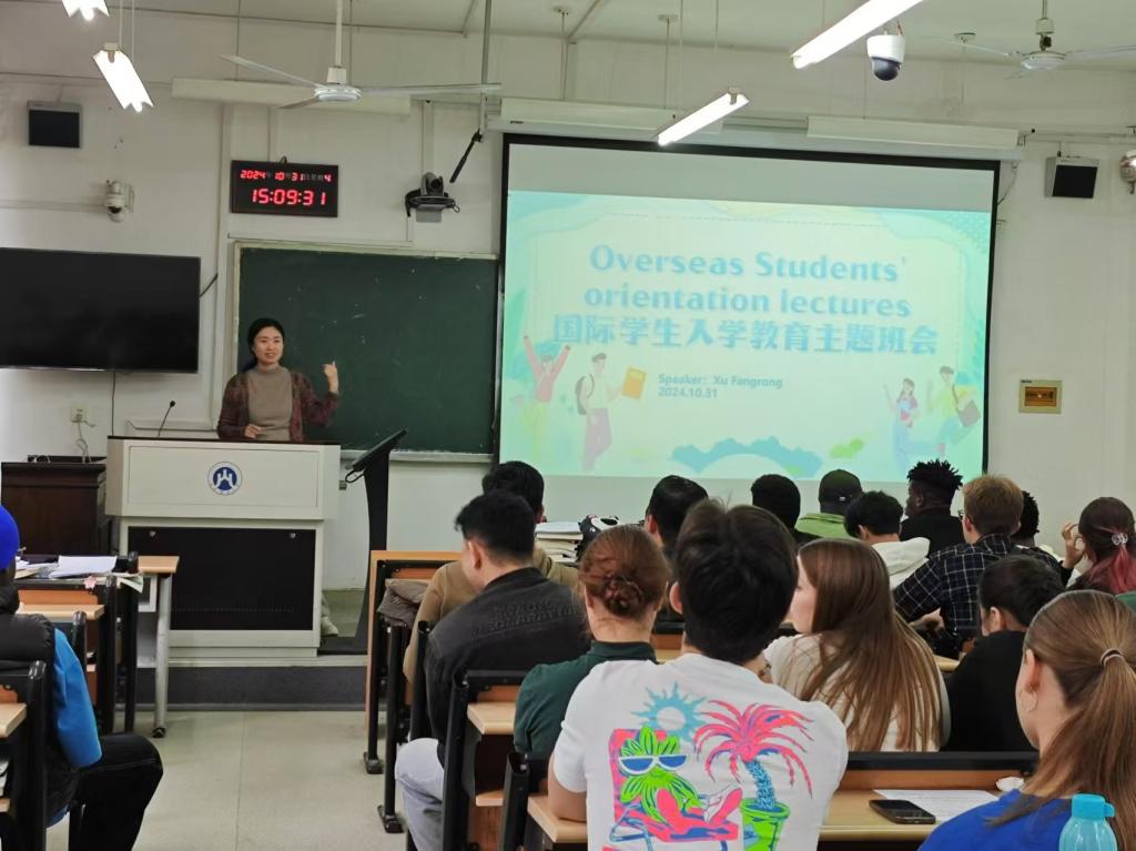 留学生辅导员召开了来华留学生新生入学教育主题班会,她强调,来华留学生应当遵守中国法律法规,尊重中国风俗习惯,遵守学校规章制度,完成学校规定的学习任务。学院来华留学生本科教学秘书任晗笑为同学们详细介绍了教务系统的使用方法,条理清晰地讲述了每个学期的学习安排,并从留学生培养方案的讲解入手,明确了来华留学生在华学习的课堂纪律和毕业要求。班会强调了来华留学生应遵守的基本规范,通过学业指导等,帮助大家更好地适应并融入中国的学习环境与文化。同学们积极响应,为顺利完成留学学业打下了坚实基础。