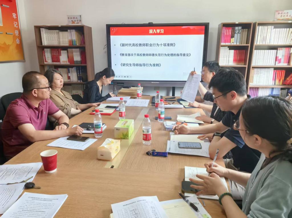 院长助理王英杰解读了学校师德师风专项整治方案,强调全体教职工要提高政治站位,深刻认识师德师风建设的重要性,严格对照《新时代高校教师职业行为十项准则》检视自身行为,严守政治纪律和职业规范。