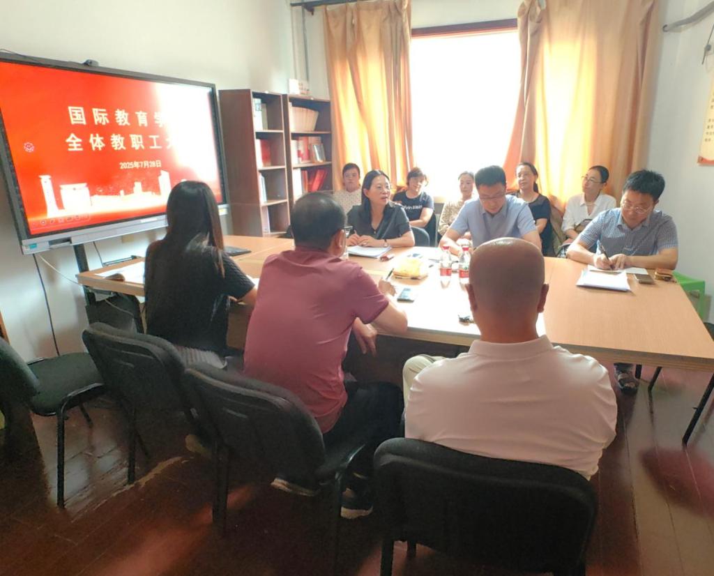 7月28日,ok138cn太阳集团在舜耕校区干训楼会议室召开全体教职工大会,推进学院第三轮教师岗位聘用考核工作,部署学院机构设置与人员调整相关任务分工和暑期工作,全体教职工参加。会议由党委书记张红燕主持。