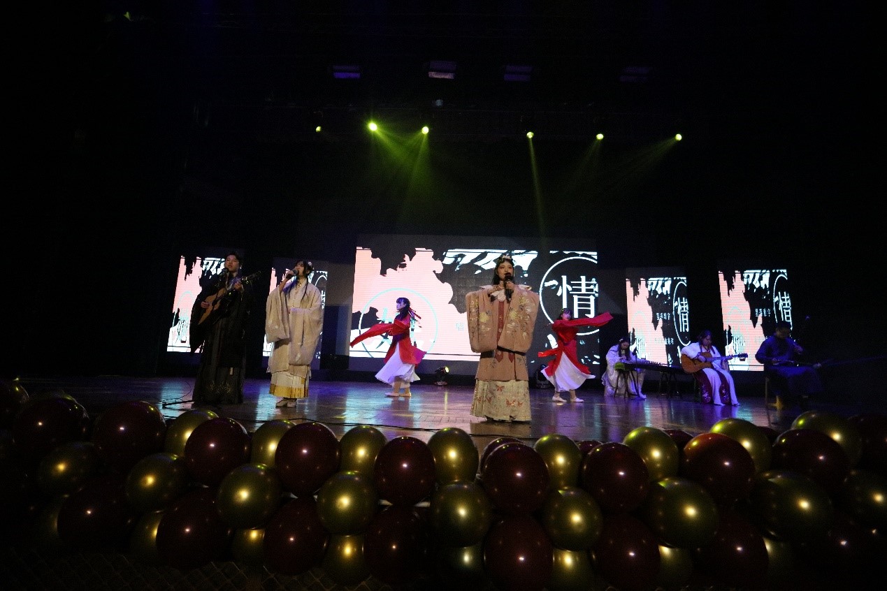 第一篇章主题为“筑梦青春,活力国教”,首先由特邀校友张倬诚为大家献唱《最美的太阳》,道出了追逐梦想,永不放弃的勇气和决心,也许前路泥泞坎坷,也许你也有片刻想过放弃,但是总会有一群人陪着你度过那些难过的时光,动人的歌喉温暖和感染了在场每位观众的心;接下来由第舞季刘德荣等带来了韩舞《showourselves》,回旋的舞步,激扬起青春的活力,欢乐的旋律,点燃起现场观众的热情;精彩的舞蹈表演后由魏国伦、李柯萱带来的歌曲《你被写进我的歌里》,温柔的声线,独具特色的影子表演震撼全场,神秘而又浪漫;由赵庆玲、马菀泽、张浩坤、苏浩绪、马胤良5位同学带来的乐器合奏《梁祝与鱼》婉转明媚,如一泓清泉流入我们的心底,中西方的碰撞,带给我们一场听觉的盛宴;荧光棒汇成彩色海洋,随着歌曲的节拍摇摆,由白果音乐社的李柯萱、闫蕙葳、宿文菲等带来的歌曲串烧,跳跃的音符中诠释了对青春、对梦想的追求。