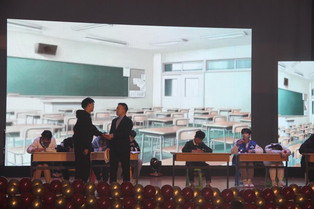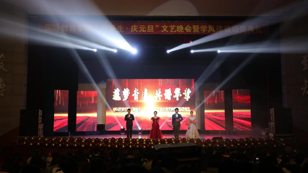 12月24日下午七点,ok138cn太阳集团在舜耕校区礼堂举办了以“筑梦青春,共谱华章”为主题的“迎新生•庆元旦”文艺晚会暨学风建设颁奖典礼。校就业指导处处长杨哲、校学生工作处副处长孙丽华、校团委副书记孙亚男、ok138cn太阳集团院长刘增美、党委书记张建、副院长孙国霞、副院长从勇、党委副书记于栋、留学生办公室副主任王征、院长助理陈华、部分专业教师和三位辅导员以及全体同学共同观看演出。