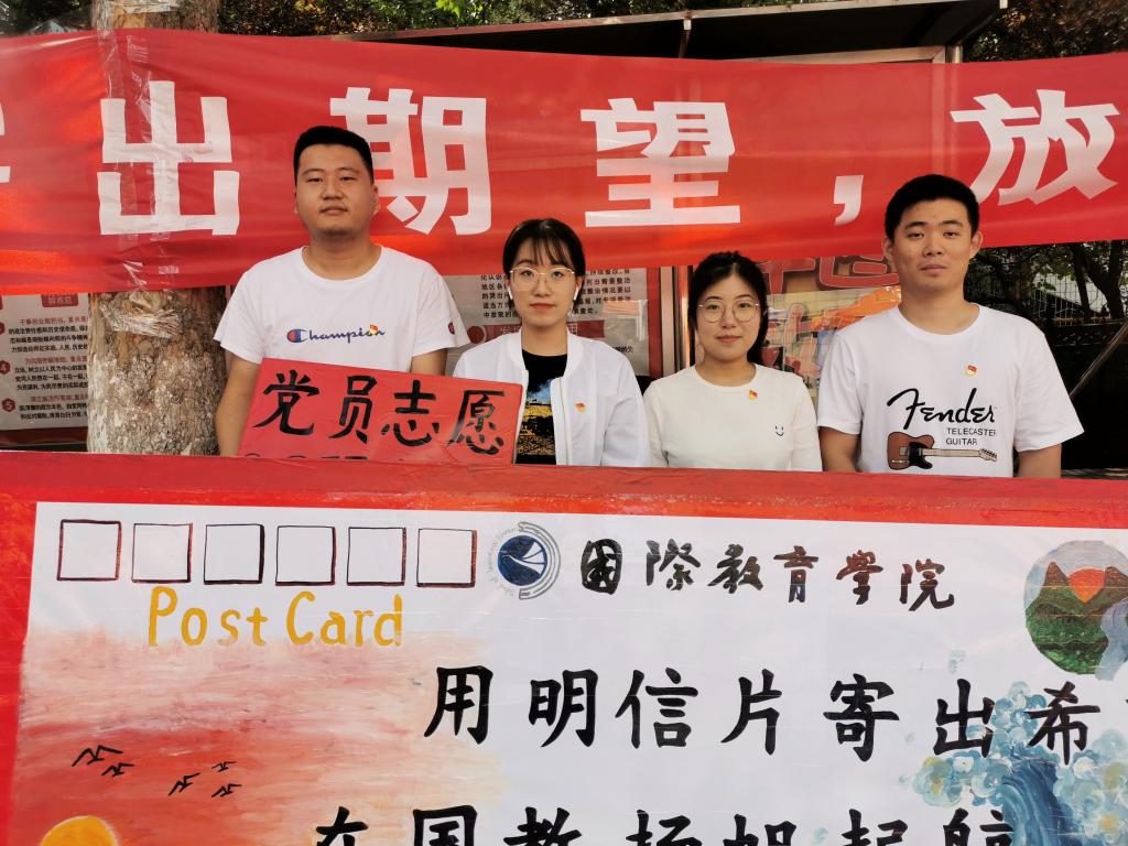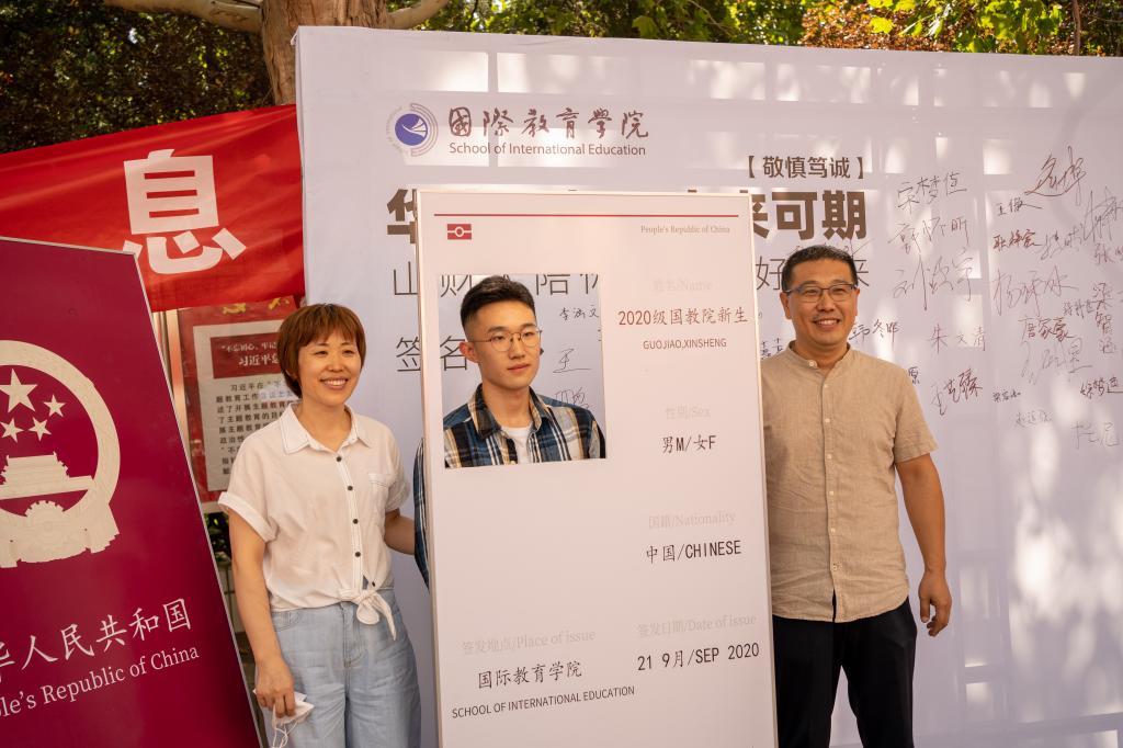 今年的迎新工作新意迭出,让同学们感受到不一样的惊喜。由学生党员组成的志愿服务岗,耐心帮助同学们办理入学手续,提供各种咨询意见,并一对一将新同学引导到宿舍入住,让同学们感受到了党员的模范作用。今年,学院还设计了特色活动——“小小明信片,寄出梦想,放飞希望”,为新生提供有学院特色的明信片,让大家给远方的亲人和朋友送去自己的入学感言。大家纷纷执笔写下对未来的期许和对家人的祝福:“大学四年,不负韶华;努力学习,奋发向上”,“一切安好,万事胜意,请爸爸妈妈放心,我能照顾好自己”,“不忘初心,天天向上”,“平安喜乐,身体健康”……这也正象征着新生们已经踏上了一个人生新起点,乘风破浪,未来可期。在印有“华章再起,未来可期”的签名簿和新生护照拍照处,新生与家长到合影留念,并郑重写下自己的名字,标志着正式加入国教大家庭,成为学院的一份子。