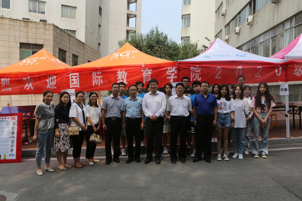21日中午,校长赵忠秀在各职能部门负责人的陪同下,来到我院新生报到现场,亲切询问各项工作的进程,并对我院迎新工作给予了肯定。在新生接待工作有序开展期间,院长刘增美、院党委书记张建、副书记于栋亲临现场,与新生家长亲切交流,贴心周到的服务赢得了新生与家长们的一致好评。