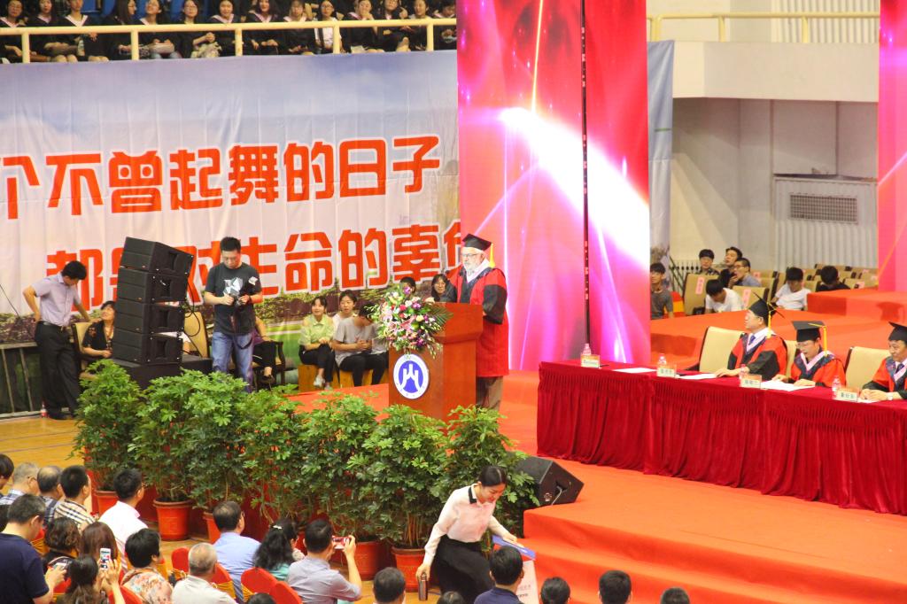 副校长韩作生发表了热情洋溢的致辞,对2018届毕业生取得的优异成绩表示热烈祝贺。他充分肯定了中加合作项目自2008年设立以来取得的优异成绩以及中加项目为学校做出的贡献。希望中加项目发展得越来越好,为社会培养出更多的优秀人才。韩作生勉励同学们继续努力,争取更好的成绩,并祝愿同学们一帆风顺、前程似锦,万事如意!