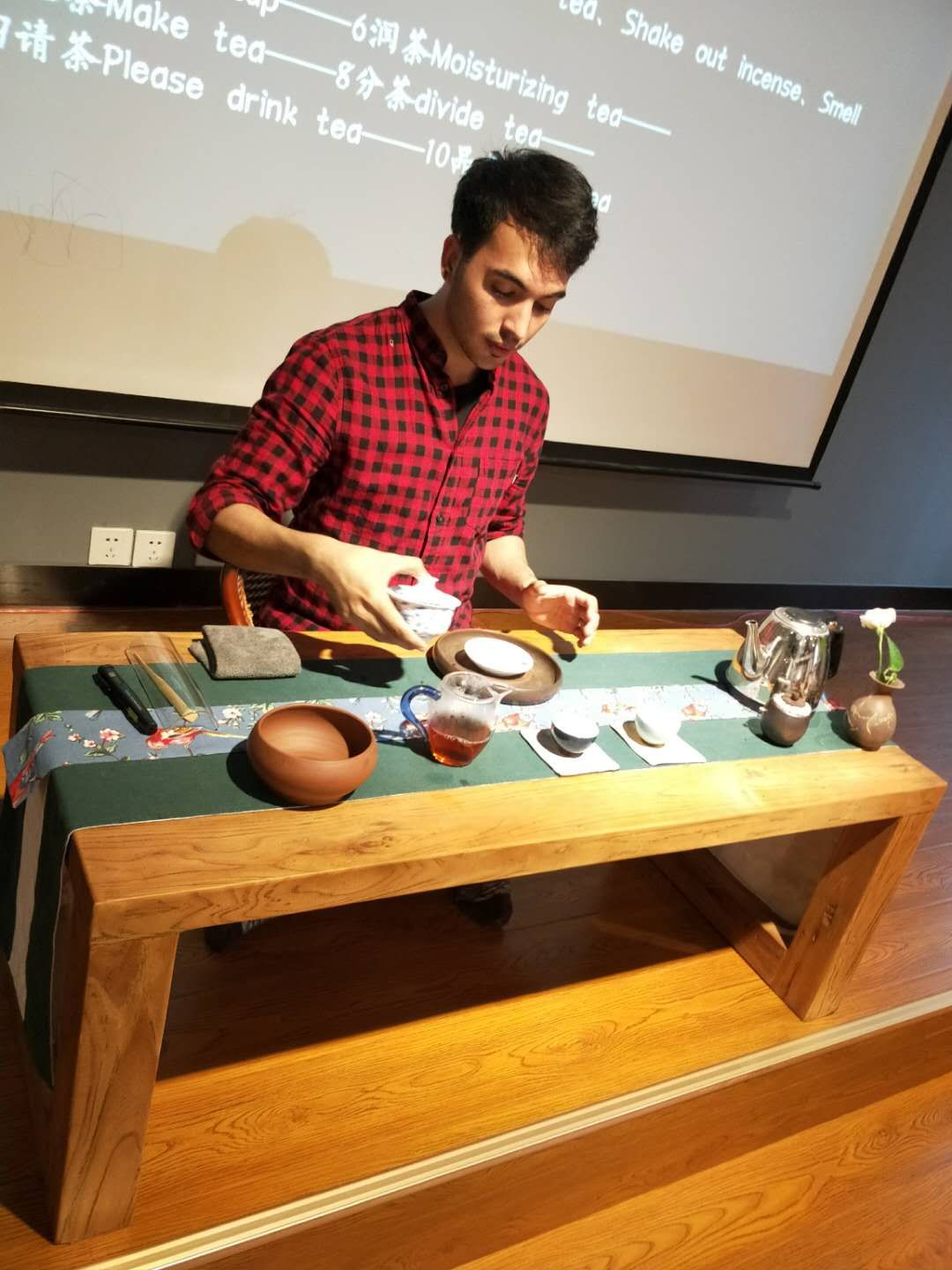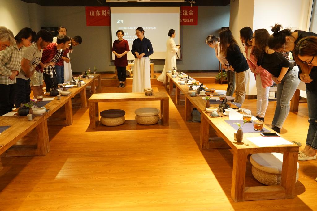 来自捷克、斯洛伐克、伊朗、哈萨克斯坦、蒙古、日本、尼日利亚等国10名国际学生在大榕树美学馆培训师带领下,体验了如何泡好一杯中国茶的活动。学生们对于行茶礼和茶具的摆放表现出极高的兴趣。茶艺老师还与国际学生们讨论国际学生所在国家的茶文化,并进行中外文化对比,使国际学生在交流中进一步感受到中国传统文化。