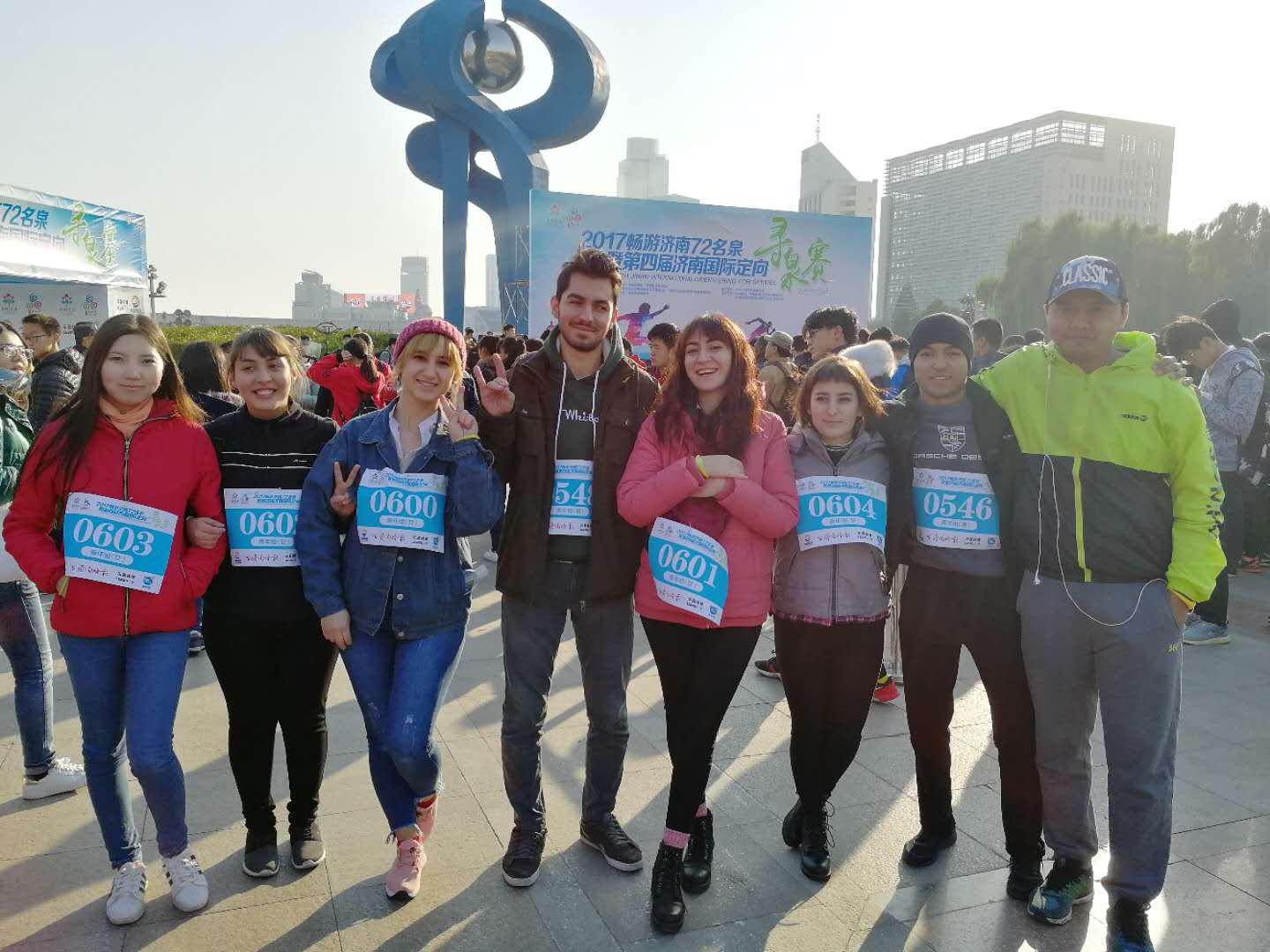 2017年11月12日上午,我校14留学生名留学生参加了济南市第三届泉眼搜寻大赛,此项比赛在济南知名度颇高,每次举办都吸引济南众多市民参加。参赛选手来自各行各业,比赛很有趣味性,受到济南市民广泛好评。