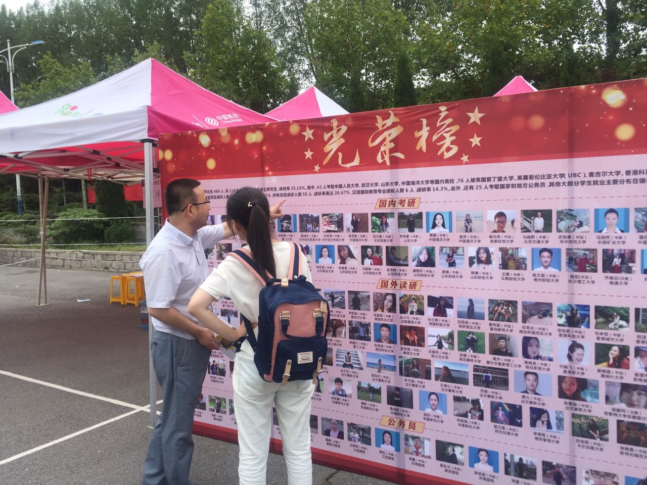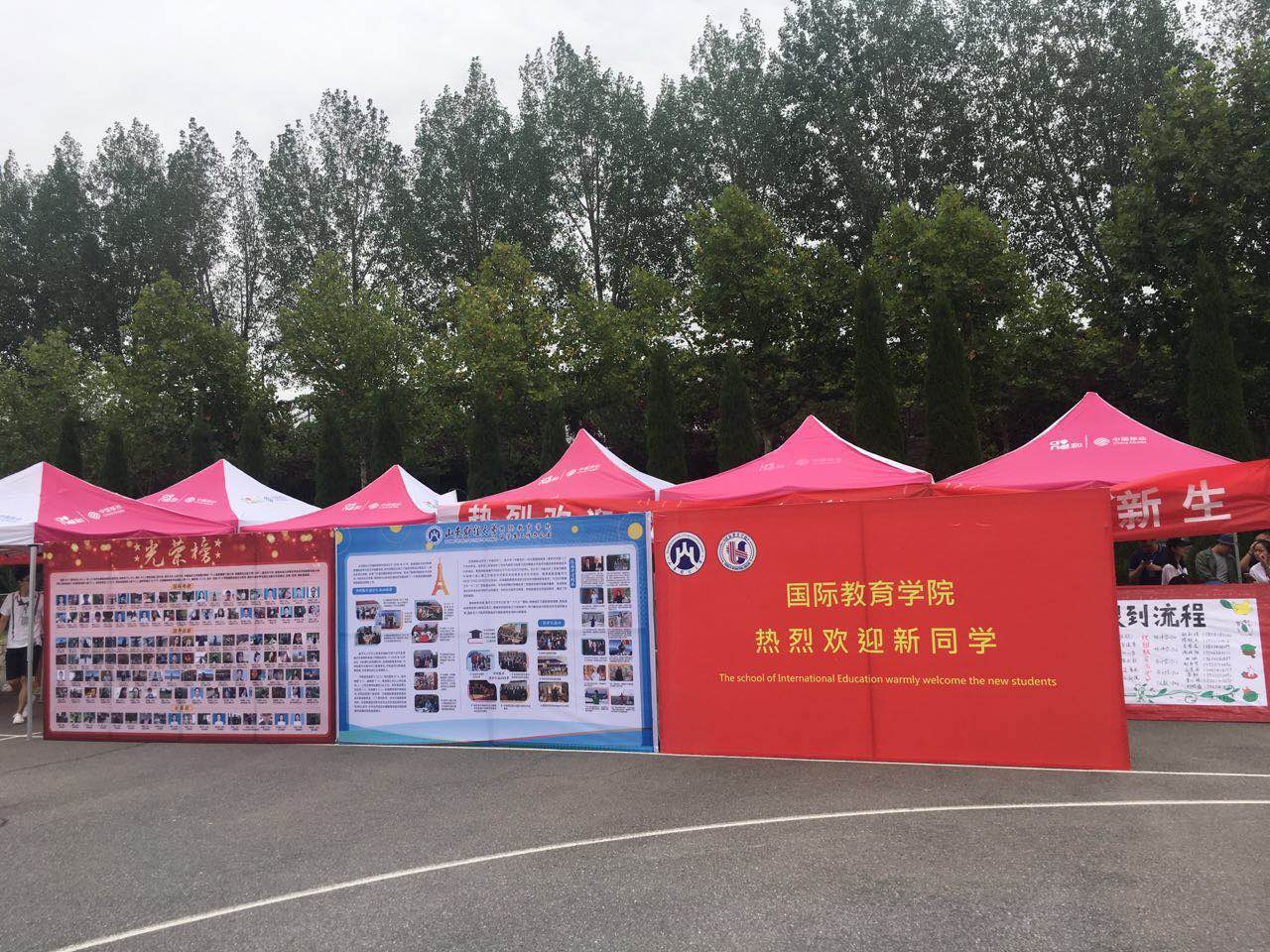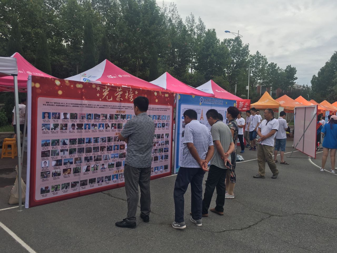 迎新现场,我们设置了手续报道区、家长休息区和志愿者服务区,摆放上我们精心制作的报道须知、学院概况和光荣榜等宣传展板,其中往届学子风采和2017届毕业生光荣榜格外惹眼,吸引了众多学生和家长驻足观看,校领导也对我院培养的优秀毕业生连连称赞。这些优秀学生代表,一定会激励新同学们在大学期间砥砺前行,实现自己的人生理想与远大目标。
