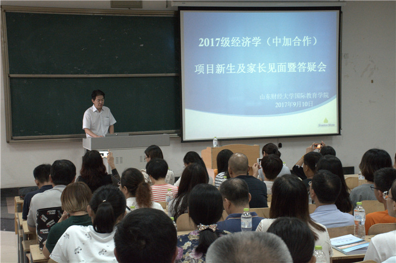 为了使2017级新生和家长能更好的了解项目情况,尽快确立目标,明确自己的大学生涯规划,学院还特别于报道当天的下午1点,举办了2017级新生及家长见面暨答疑会。院长刘增美、党委书记赵利、党委副书记张红燕、院长助理王英杰、中加项目外方负责人Barry Lesser教授和中新项目外方课程协调人Bill老师以及学院相关老师均参加了家长会。会上,刘院长做了热情洋溢的致辞,为学生家长介绍了学院的情况以及两个项目的优势所在。两个项目的外方负责人分别介绍了外方学校的相关情况。此后,与会领导和老师又分别就家长提出的问题做了耐心解答。