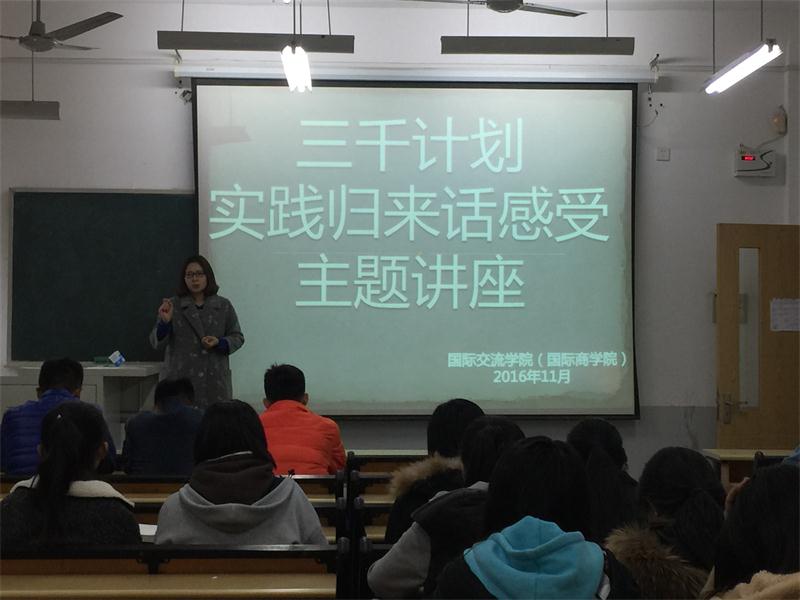 为让2016级新生对 “三千计划”社会实践有更深入的了解,我院于11月7日中午1:00在1307教室召开“三千计划——实践归来话感受”的主题讲座。学工办主任兼团委书记王坤老师,14、15级部分学生骨干及16级部分新生参加了会议。