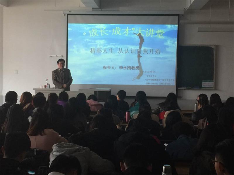 为了让学生进一步正确认识自我,不断发展完善自我,3月24日,我院特邀我校李永刚教授进行以“精彩人生 从认识自我开始”为主题的“成长·成才”大讲堂。13级和15级全体同学倾听了演讲。