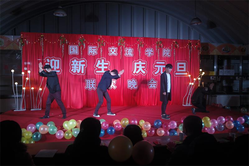 为迎接2015级新生的到来,展现我院学子的风采,2015年12月27日晚上7点,由国际交流学院(国际商学院)主办、国际交流学院(国际商学院)团委和学生会承办的以“迎新生•庆元旦”为主题的联欢晚会在舜耕校区第三食堂隆重举行。出席晚会的领导和老师:国际交流学院(国际商学院)党委书记孙玉杰、副院长丛勇、学工办主任兼团委书记王坤、团委朱维霞,晚会还特别邀请了外教老师Martin和比利时留学生梅亚华、学院历届优秀毕业生及学生会骨干代表。我院2014级、2015级全体同学参加晚会。