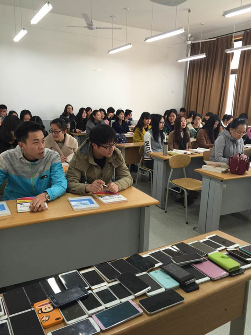 同时,我院新学期的教学工作也展现出一大亮点,就是由2014级全体学生提出的“无手机课堂”倡议。此倡议也在本学期开始进行具体实施工作:课堂上专门设立了手机安全存放点,并设有专人负责存放、保管和分发,同学们在进入教室前将手机关机或调成静音状态,并在进入教室后将标识有学生个人信息的手机放在存放点,下课出教室时负责人将手机分发给学生带走。这一措施一方面为学生营造了一个良好的学习氛围;另一方面提高学生的课堂学习效率。使学生在大学课堂中能够获得真正的知识,并树立良好的学习习惯,也为我院学风建设增添一笔新的光彩。