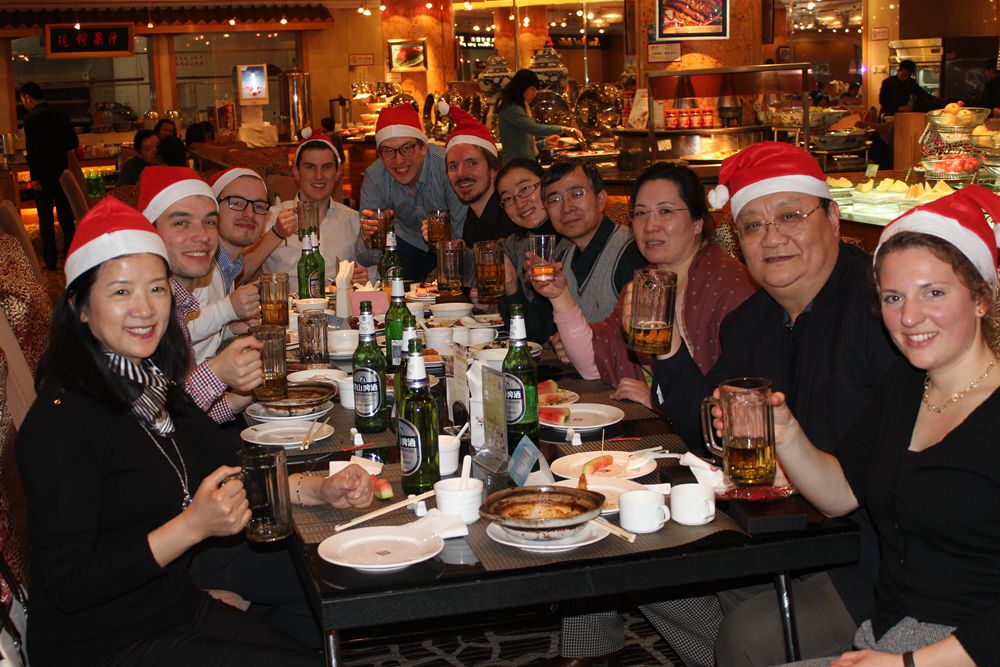 Heinz-Nixdorf基金会第一期奖学金获得者现山东省轻工业协会会长朱维平、我院副院长孙国霞、副书记高峰、教师代表马波及孟祥芳出席了晚宴,大家共祝留学生们在中国学习、生活愉快,愿留学生们在济南度过一个有意义的圣诞节。留学生们也表示他们能在济南和中国的朋友们一起过圣诞节感到很开心,留学生们举杯共祝美好愿望并感谢学院的盛情和关心。