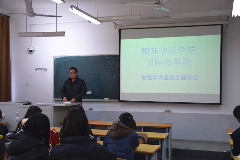 为了加强学院学风建设,引导学生进行自我教育、自我管理和自我服务,我学院积极响应校团委、校学生会、校研究生会在近期开展班级主题班会团日活动的决定。12月18日下午,2014级经济学中加一班、经济学中加二班分别在1205和1210召开加强学风建设主题班会,班会由各班班长主持。