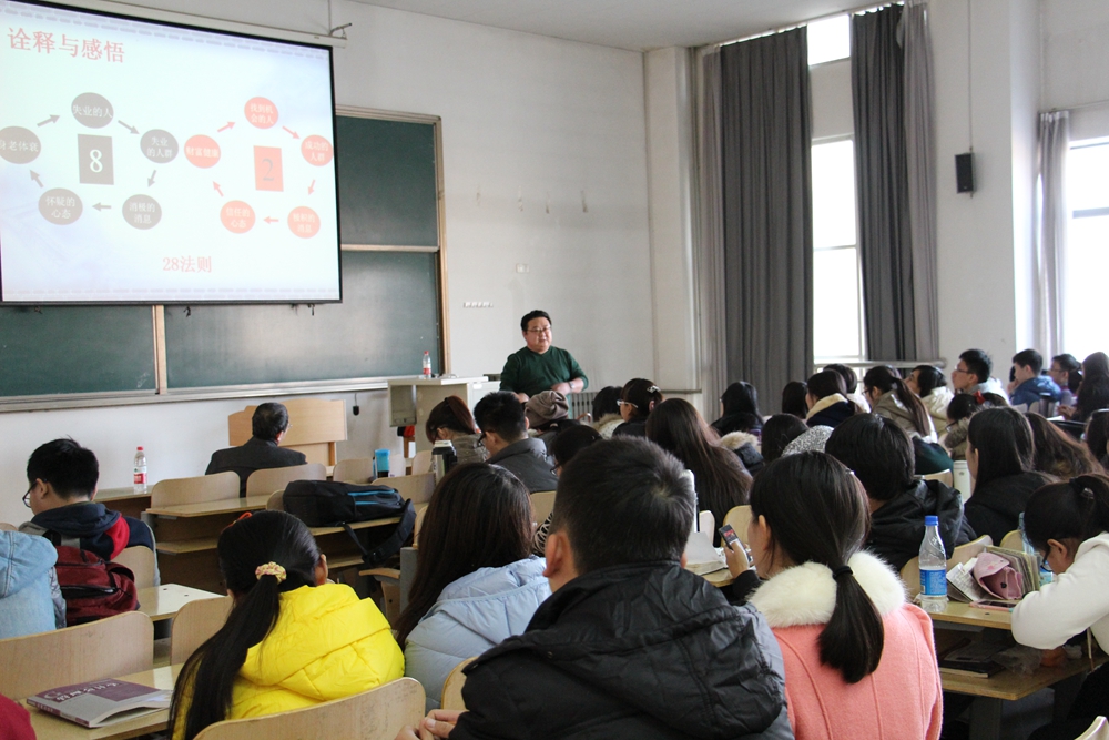 12月4日下午3:00,著名讲师赵伯轩先生于逸夫楼401教室为我校学生开展“人生的演变——大学生职业生涯规划”讲座。本次讲座由就业指导处、ok138cn太阳集团、管理科学与工程学院、计算机科学与技术学院、统计学院共同举办,我院党委副书记高峰主持,四个学院大三大四学生参与讲座。