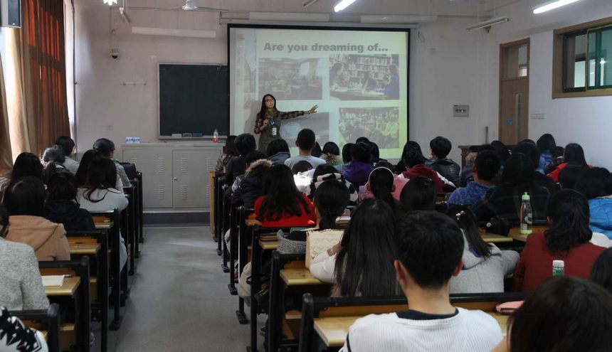 学院领导老师特意邀请来了具备多年雅思教学经验、长期从事雅思考试研究的济南贵学教育集团济南分校教学校长赵倩老师前来进行知识讲座。报告围绕雅思考试基本要求与流程、雅思写作、雅思核心语法等几个模块展开,做到专业性与通俗性相结合,现场互动较多,充分解答了同学们的疑问。