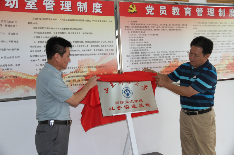 8月25日,国际交流学院(国际商学院)组织了2014年暑期社会实践活动,并在山东滕州市万宝童车有限公司建立了社会实践基地,揭牌仪式在滕州市万宝童车有限公司举行。
