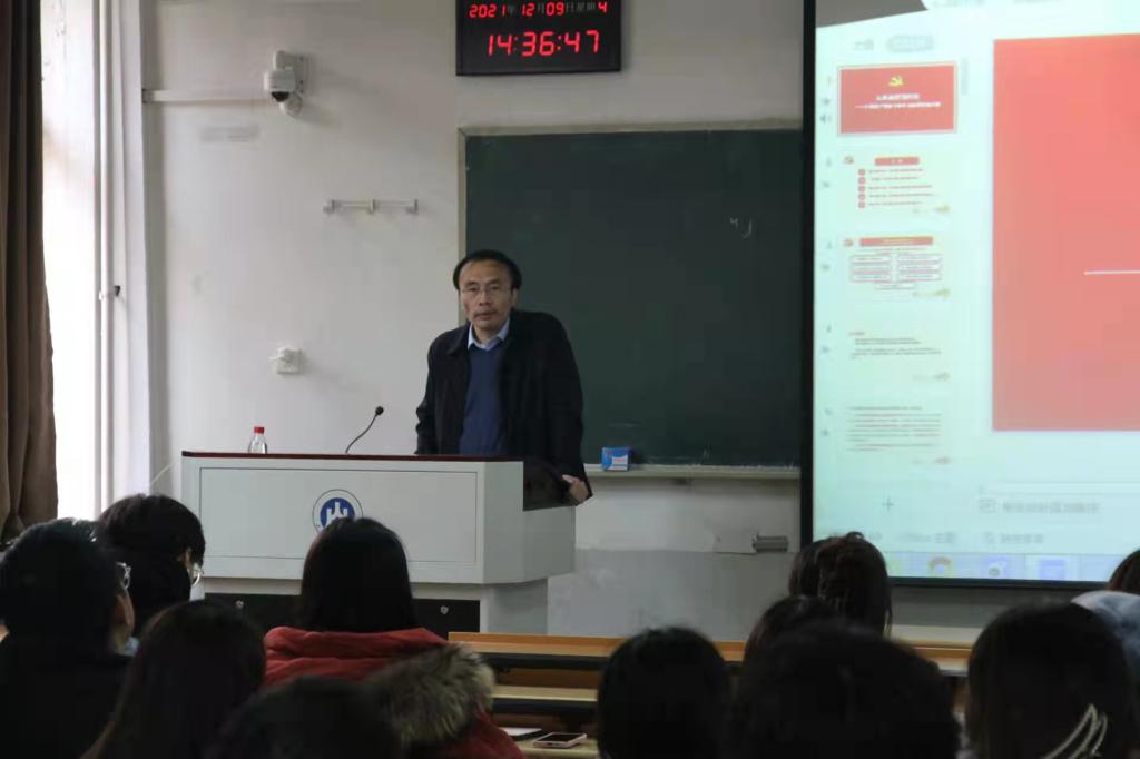 12月9日下午,ok138cn太阳集团党委书记张建以《从革命到现代化——中国共产党百年奋斗历程的主题变奏》为题,为本学期新发展党员及发展对象讲了党课。