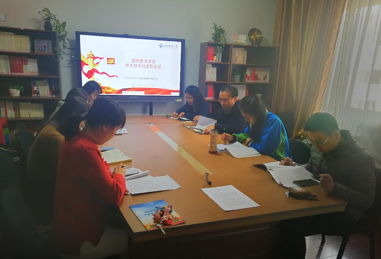 为深入学习贯彻习近平新时代中国特色社会主义思想和党的十九届六中全会精神,压实党支部书记履职尽责能力,12月31日下午,ok138cn太阳集团党委在舜耕校区干训楼9402会议室召开2021年度党支部书记述职评议会。学院党委领导班子成员和各党支部书记参加会议。