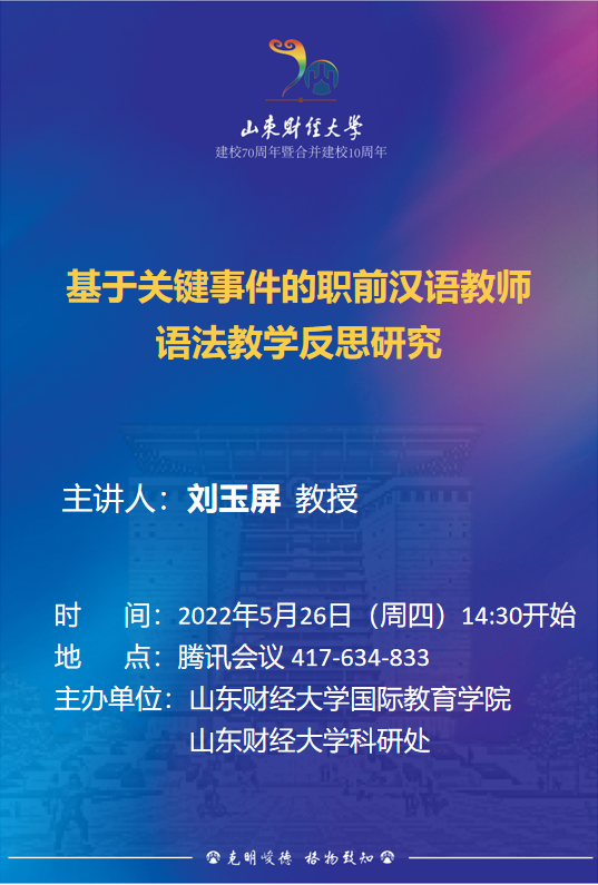 讲座题目:基于关键事件的职前汉语教师语法教学反思研究