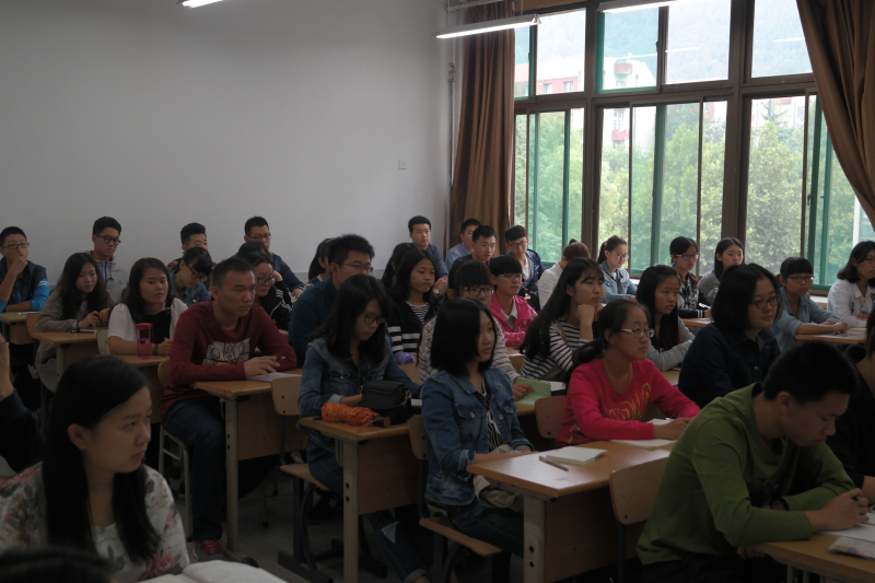朱老师首先对新生进行了党建知识教育,介绍了入党积极分子选拔和入党程序,希望同学们入校后严格要求自己,能以党员的标准要求自己,提高学院党委建设的整体素质。随后,介绍了学生奖助贷等方面,对国家级、省级、校级的奖学金政策与各项荣誉的获得规定进行了具体的介绍,她强调2015级新生应端正学习态度,提高个人素养,提升学习热情,在校园中养成积极向上的学风;同时也要兼顾上课纪律、宿舍卫生等方面。