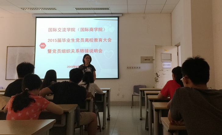 为了增强毕业生党员的党性修养,提高毕业生党员的思想觉悟,坚定毕业生党员的理想信念,进一步加强对毕业生党员离校教育管理工作,6月8日下午16:00,国际交流学院(国际商学院)在舜耕校区研究生楼104教室召开了2015届毕业生党员教育大会暨党员组织关系转接说明会。