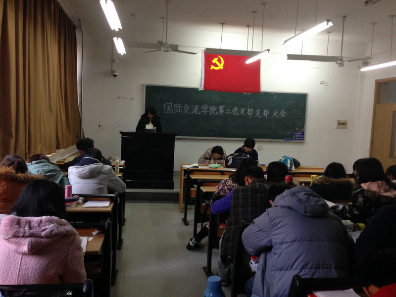 2013年12月12日,国际交流学院学生各党支部分别在2102、2104教室和干训楼B501教室召开了学生党支部纳新及转正大会,全体正式党员和本期发展对象到会参加。大会严格按照接受预备党员和预备党员转正的支部大会程序进行,从发展对象宣读入党志愿书——介绍人接受发展对象的培养过程、现实表现及对其入党的态度——支委会报告对发展对象的审查意见——党员讨论发言——正式党员投票——发展对象表态发言几个环节逐一展开。经投票表决,全体正式党员一致同意本期35名发展对象加入中国共产党。最后,各党支部书记对35名新党员提出希望和要求,要求他们以“严于律己,宽以待人”、“吃苦在前,享乐在后”的标准做人、做事,在日常学习、生活和工作中发扬一名学生党员的先锋模范带头作用,牢记党的宗旨,努力学习专业知识,踏实工作,诚恳做人,真正做到从思想上入党、行动上入党。之后进行了预备党员转正大会,大会严格按照预备党员转正程序进行,全体正式党员一致投票表决同意本期预备党员按期转正。