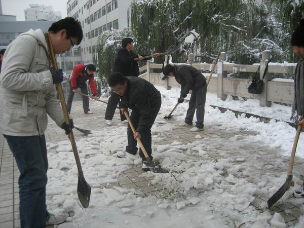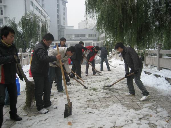 暴雪初停,天气寒冷,地面上冰面覆盖,严重影响了同学们的上课出行。为给同学们的出行提供方便,我院学生骨干不畏严寒,利用午休时间,在校园内进行了冰雪清扫活动。在大家的共同努力下,原本湿滑难行的路面很快变得畅通无阻,极大的改善了同学们的出行条件,方便了同学们的出行,