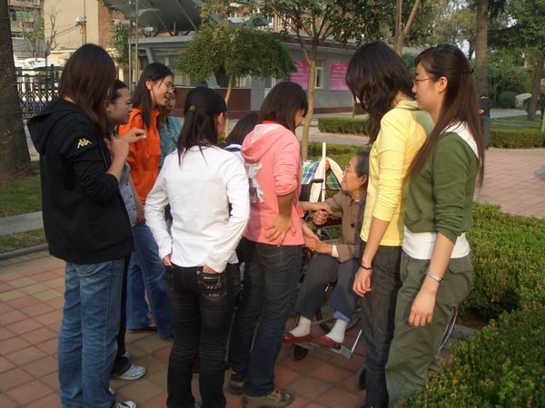 本期党员发展对象同学带着水果和祝福来到了福利院。同学们积极与院内孤寡老人聊天谈心,表达节日的祝贺,了解老人们的生活状况和心理状况。此外,还为老人们认真地打扫了院内的环境卫生,给老人们热切的关怀,使他们在福利院优美、舒适而温馨的环境中度过一个温暖和快乐的重阳节。