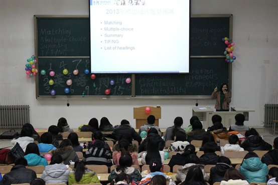 本次课程, 闫红翠通过“皆大欢喜”、“语法”“雅思阅读文章”“单词”“Paraphrasing”“万里挑一”“词根词组”“网络资源”几个环节,对语法、单词、词组、做题技巧、记忆方法几个方面做了详细介绍,并围绕雅思口语和雅思考试中常见到的一些问题进行讲解。闫老师采用采用新型授课方式,互动解答了同学们对英语学习的疑问。