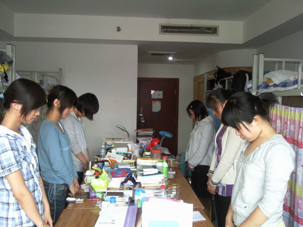 同学们在宿舍内集体默哀