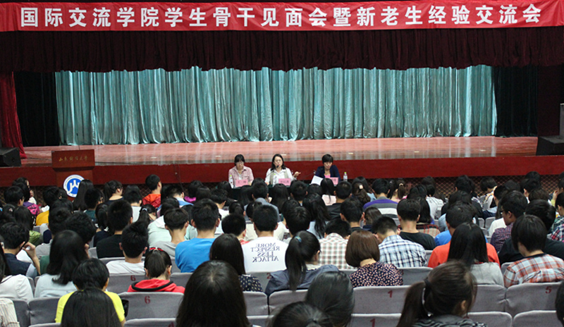 9月29日下午,在ok138cn太阳集团529舜耕校区礼堂举行了国际交流学院学生骨干见面交流会暨新老生经验交流会。参加本次会议的老师有国际交流学院党总支副书记张红燕副教授,学工办主任王坤老师、以及2013级新生导员朱维霞老师,国际交流学院学生会主席团成员、学生会各部部长,部分优秀老生代表及13级新生参加了本次会议。本次会议目的在于让13级新生更进一步了解学院学生会、干部的组成结构,对自己的大学生活有进一步的规划。