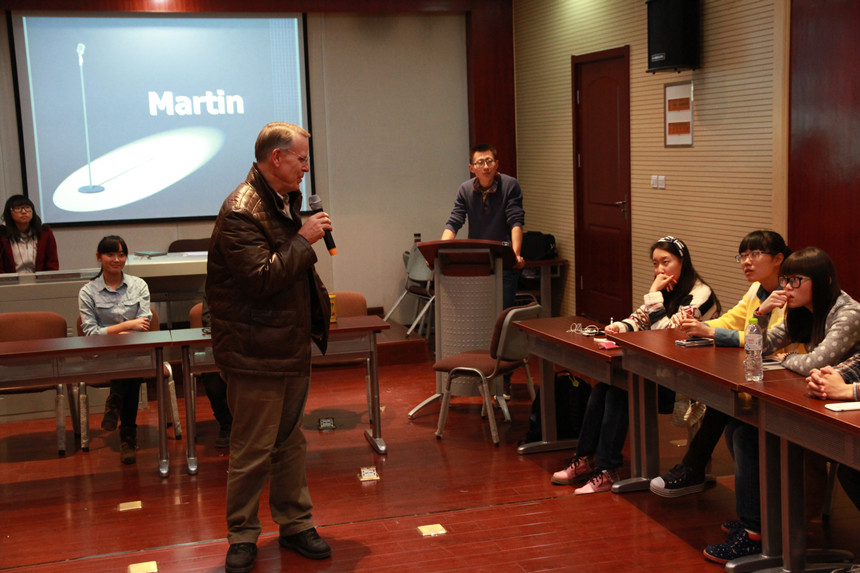 本次见面会邀请到了我校外教Martin,英语角全体社员共同参与活动。社长麻荣玉开篇致辞,鼓励大家从自己的羞涩中走出来,敢于用英语去和周围的人沟通、交流。之后,副社长李耀、张素峰、任悦分别就社团规章制度以及今后陆续开展活动等的问题进行补充说明。