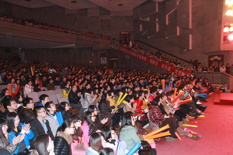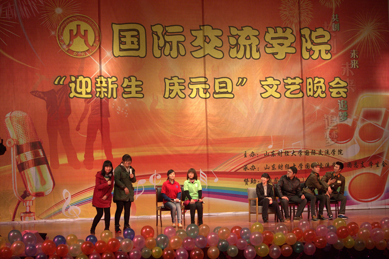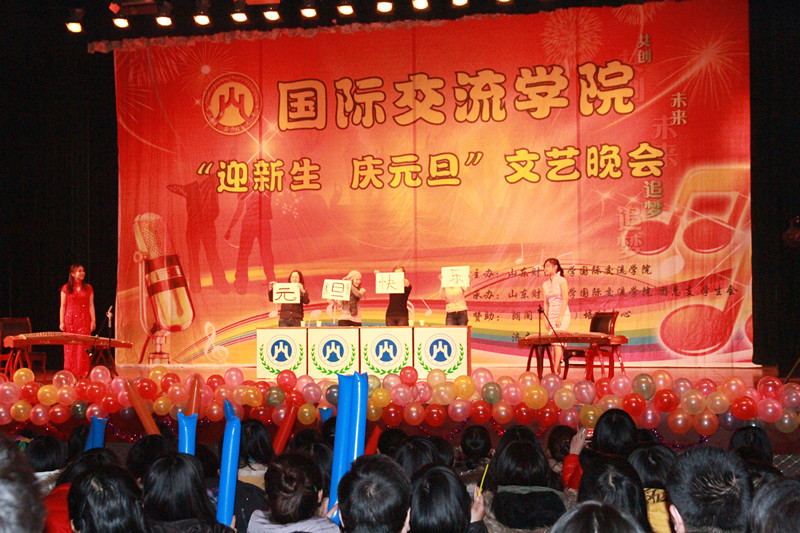为迎接2013级新生的到来,展现我院学子的风采,2013年12月15日下午2点,由ok138cn太阳集团529国际交流学院主办,国际交流学院团总支、学生会承办的以"迎新生,庆元旦"为主题的迎新晚会在舜耕校区礼堂隆重举行。出席晚会的有校党委学生工作处处长王剑,国际交流学院院长杨慧琴教授,党总支书记郑磊教授,党总支副书记张红燕副教授,学工办全体老师,国际交流学院全体同学参与本次晚会,晚会现场座无虚席。