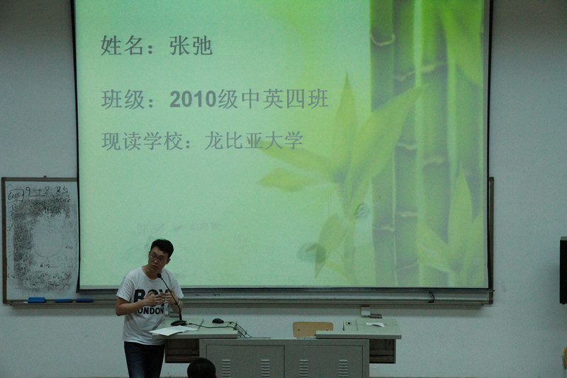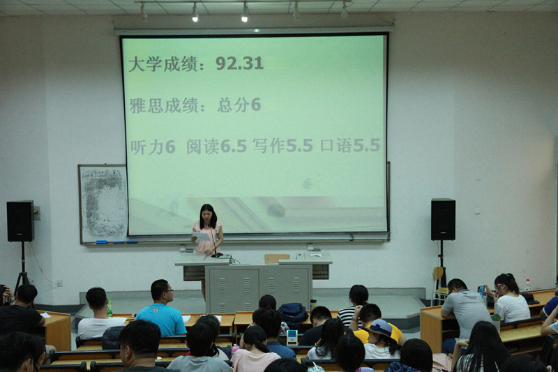 最后,在爱丁堡龙比亚大学就读一年,学习成绩优秀,目前已申请上英国莱斯特大学、肯特大学和瓦特大学等多所名校就读研究生的10级优秀毕业生张弛跟大家分享了他留学英国的亲身感受,他用幽默风趣的语言从衣、食、住、行这样的细节之处给即将出国和有意向出国的同学们提供了有效的建议,并对在国外的学习和申研进行了详细的介绍。