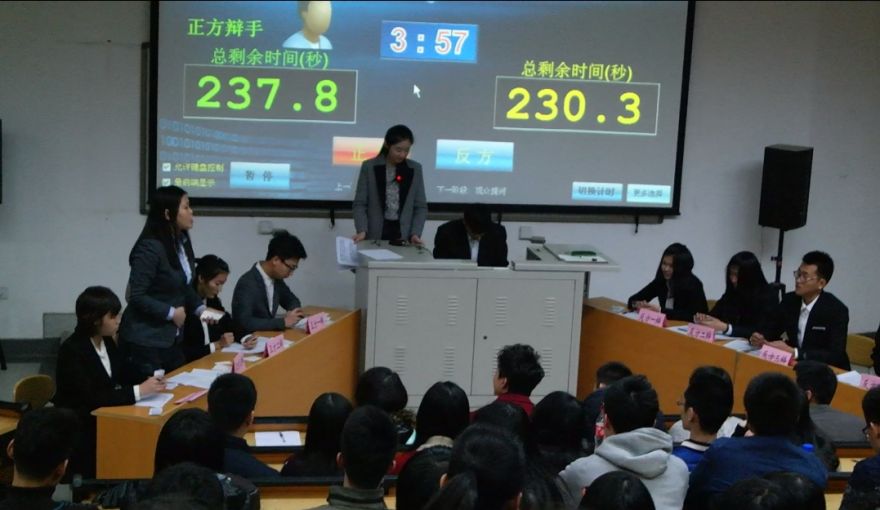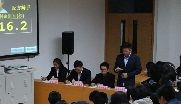 此次活动主要分为精英赛和决赛两个部分,其中精英赛辩题为“从未在一起和最后没有在一起哪个更遗憾”,决赛辩题则围绕“审时度势和坚持原则哪个更重要”展开。比赛伊始,在台下一片掌声中,双方辩手出场。辩手们通过几句充满气势的话语亮出各自观点,灵活的思维和缜密的逻辑推理,不时的赢得场下阵阵掌声。比赛过程中,场上所有辩手都尽情发挥着自己的最佳水平,唇枪舌剑、针锋相对,掀起一阵阵辩论场上的高潮。观众提问环节也是尤为精彩,面对来自观众的各种各样的问题,场上辩手也是应对自如,敏捷的思维令人刮目相看。