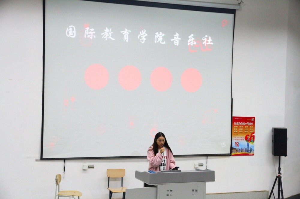 为了丰富新生的大学课余生活,各社团负责人把各自的社团用精简的形式展现给了大家。首先进行宣讲的是英语角,社员们不仅可以在公共场合通过英语演讲来提升自己的英语水平、锻炼自己的胆量,也可以通过参加感恩节等西方传统节日来感受异域文化的魅力。接下来是乒羽社,加入这个大家庭可以在通过运动愉悦身心的同时结交很多志同道合的好友,从而一起进步。随后书友社向同学们展示了读书百遍、以书为伴的大学生活,雨果曾言:“音乐是思考着的声音。”接下来,音乐社社长的单秀娟同学向同学们介绍了关于音乐社的种种,若你热爱音乐,喜欢聆听的感觉,何不加入他们,一起来感受音乐流淌过心灵的瞬间。有劲歌自然有热舞,以爵士和街舞为主的StDC舞社展示了独属于年轻人的活力与魅力。紧接着是话剧社团,人生只有一次,可话剧可以不断演绎,如果你想体验不同的人生,那么请加入他们,一起来演绎不一样的精彩。“高端大气上档次”恐怕是形容青鸟微影视协会的不二选择,从专业拍摄到后期精美剪辑,他们不断努力记录着同学们生活的点点滴滴。而后“辩是辩非,论古论今”的辩协,打破了我们以往对辩论的认识,有趣的辩题拉近了辩论与我们的距离。最后是致力于公益活动的青年志愿者协会,同学们可以通过进行志愿活动来体会到人生的价值。