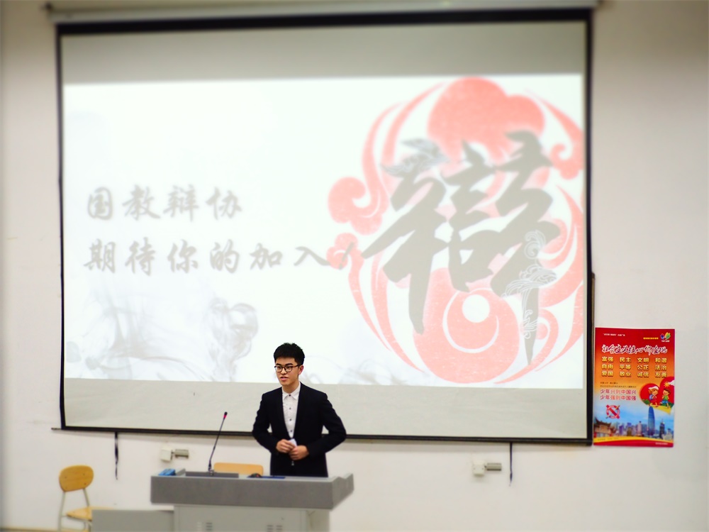 下午6点,各社团负责人就位,同学们陆续进入阶梯教室。本次纳新宣讲活动由学生会社团部长李雪岩主持。学院现有英语角、书友社、话剧社、青鸟摄影协会、青年志愿者协会、辩论协会、SDC舞社、乒羽协会、音乐社共9个社团,均参与此次纳新宣讲活动。