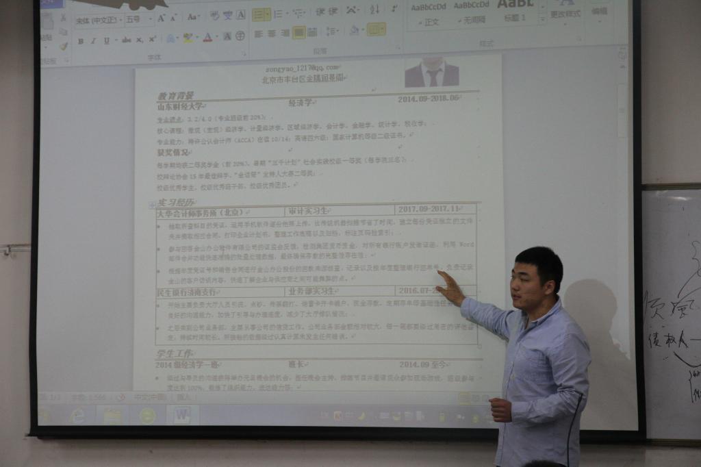本次分享会的主题是就业,围绕银行招考、公务员考试和会计师事务所的应聘进行经验分享。王冰松同学以自身为例,分析了银行的就业前景,强调了选择的重要性,希望同学们根据自身状况选择适合自己的道路。尚帅同学则从银行招聘的具体环节入手,为同学们讲解了应聘步骤和注意事项,着重强调面试环节的重要性,包括面试前的准备,一面、二面的技巧等。崔杨靖夷同学分享了考取公务员的经验,她认为公务员考试主要侧重点在于行为认识,必须要把短期突击应试辅导获得成功的概率降到最低,同时介绍了行测和申论不同的应对方法。赵泽恩同学主要向大家介绍了公务员考试的面试环节,包括面试的具体流程,应对技巧,以及公务员面试和银行面试的不同之处。宋遥同学介绍了应聘会计师事务所的注意事项,讲解了一些应聘过程中的技巧,着重为大家介绍了简历的设计排版。学长学姐们思维敏捷,妙语连珠,现场掌声不断,气氛热烈。