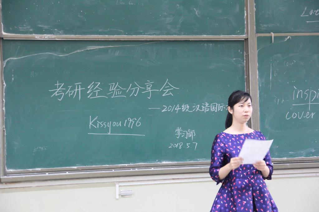 为了给学弟学妹们明确考研目标,掌握更多考研技巧,我院学习部于五月七日晚六点在燕山校区1101教室举办了汉教2014级汉教考研经验交流会。