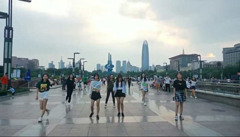 本次“快闪”活动主要由Boom Clap和Good Time两支舞蹈构成,中间穿插舞社小组成员的其他热舞solo。首先选定正对泉城广场且人群较为密集的位置,紧接着Good Time的音乐响起,舞社成员迅速从人群中闪出伴随着乐声舞动。近10名激情飞扬的舞者瞬间吸引了来往的人群,他们或拍照或录像,将舞社成员围成了一个圈。两支舞蹈结束,驻足的观众意犹未尽,迟迟不肯离去。于是社团成员开始进行分组进行其他舞蹈solo。因考虑到希望通过本次快闪活动充分展现财大学子的社团文化,舞社成员们选取泉城广场两处不同地方进行重复表演。最后,在围观群众的掌声中,本次快闪活动落下帷幕。