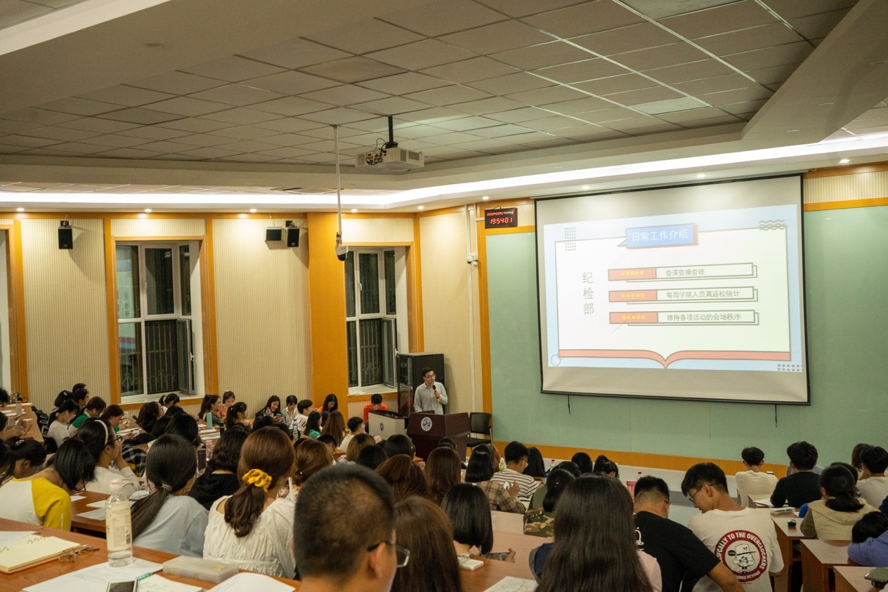 为了让2020级新生更好地规划大学生活,对我院学生干部的设置和职能等方面有更深一步的了解,我院于9月27日晚在第三阶梯教室举行学生干部工作说明会,并发放了报名表。会议由秘书长姜梦丹主持,学生会主席团和各部门分别进行了宣讲,2020级全体新生参与。