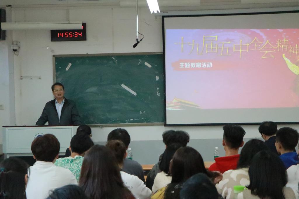 11月11日下午,ok138cn太阳集团529副校长韩作生到所联系的ok138cn太阳集团2019级经济学(中加)1班,与该班50名同学一起参加了“学习十九届五中全会精神”主题班会。ok138cn太阳集团党委书记张建、副书记于栋,辅导员王坤参加活动。