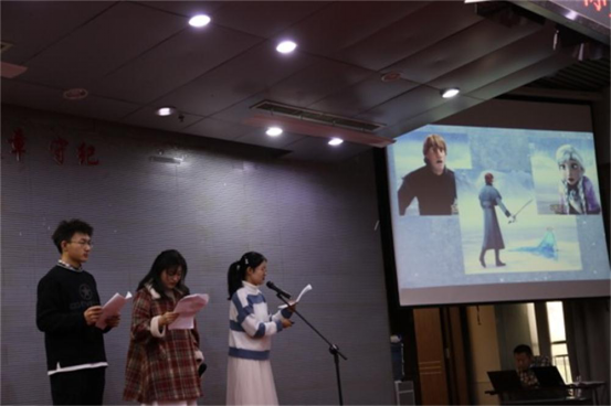 决赛舞台上,参赛选手精心准备,各展风华。参赛形式各异,电影经典桥段的逼真配音,结合当下抗疫极具渲染力的英文演讲等等,都充分体现了我院学子的家国情怀与青年担当,他们以饱满的感情诠释出英语的魅力,赢得了观众的阵阵掌声。决赛后是令人期待的颁奖典礼,学院领导老师和专业评委老师分别为初赛获奖者或决赛获奖者颁发证书与精心准备的奖品,现场气氛温暖而又鼓舞人心。