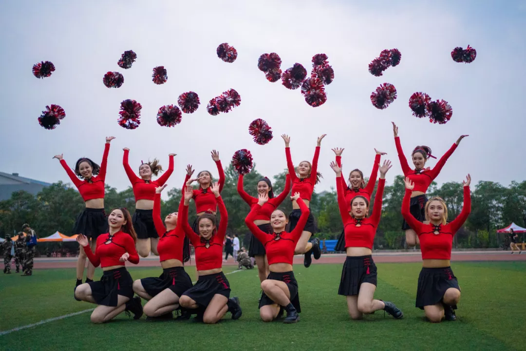 舞台上的绽放是耀眼的,我院啦啦操团队身穿充满中国风格的服装,以变换丰富的队形充分展现了国教学子的青春与活力,为所有人呈现了一场力度与美感并存,气场与柔情同在的国风爵士啦啦操!高昂的马尾、火红的发带,灯光下花球缤纷闪耀,映衬她们的双眸闪亮动人;动感的节拍、上扬的嘴角,淋漓尽致地诠释了青春下的蓬勃风采。她们眼中的滚烫星河燥热着国教学子的心,她们轻巧灵便的身姿令人称绝回味。