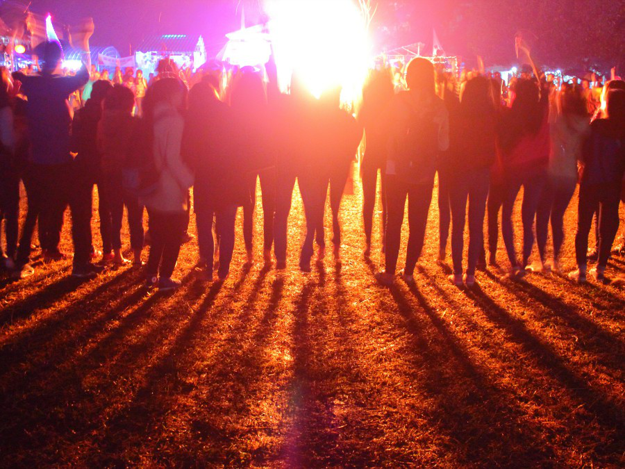 扎营(CắmTrại)活动中学生们在篝火旁欢呼