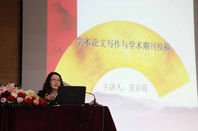 张彩霞教授结合自己的审稿经历,针对外语期刊论文写作与发表中存在的主要问题,从论文的选题和题目、研究方法、材料运用、论证逻辑、中英文摘要、关键词及论文体例六个方面全面阐释了学术论文的写作规范,张教授通过理论与实例结合,正例与反例对比以及大量真实生动的案例,为我校教师的学术论文写作与发表提供了许多有针对性的、建设性的指导意见和建议,最后,她以马克思的一句名言“目标要始终如一”作为报告的总结,希望老师们达到“志存高远、开拓创新、坚守执着、甘于落寞”的学术境界,并鼓励大家多投稿,写出高质量的学术论文。